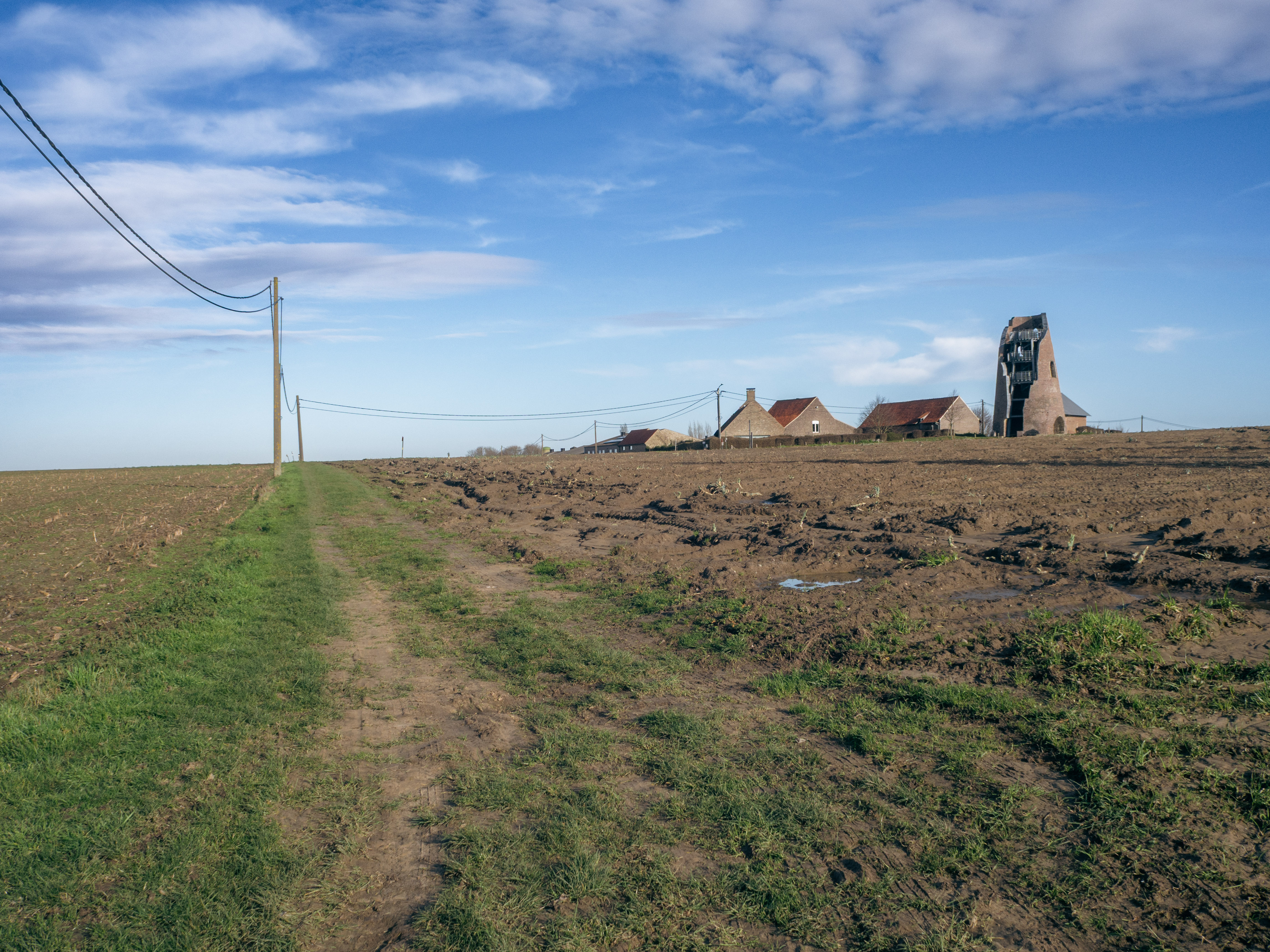 Via de fietssnelweg en enkele karakteristieke boerenpaden in Terrest klimmen we langzaam richting Klerken. Hier staat de Vredesmolen. Deze molenruïne uit de Eerste Wereldoorlog is een stille getuige van de felle strijd om de heuvelrug van Klerken. Het is een ideaal moment voor een foto en om even op adem te komen; het uitzicht over de Westhoek is hier ongeëvenaard.